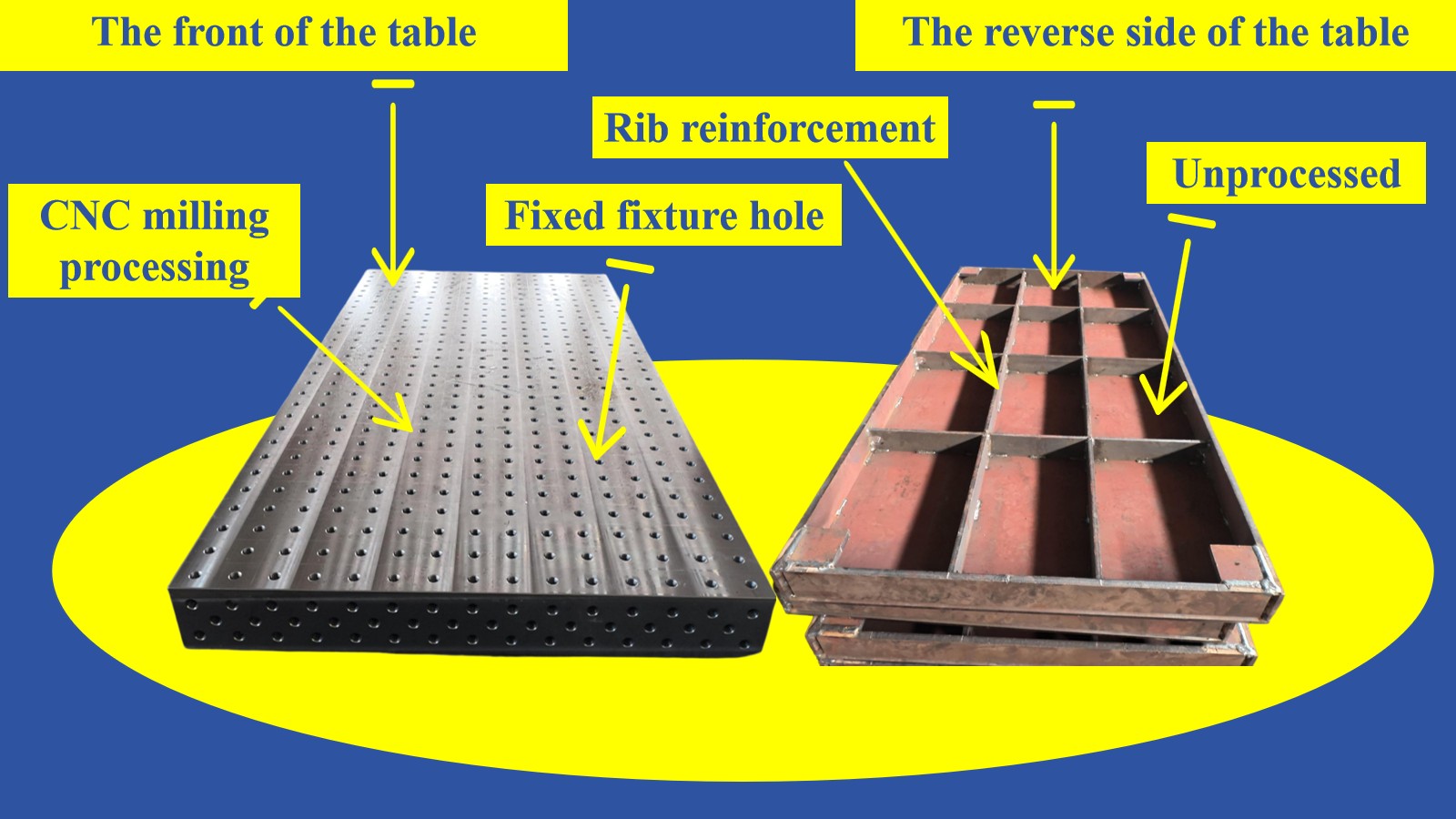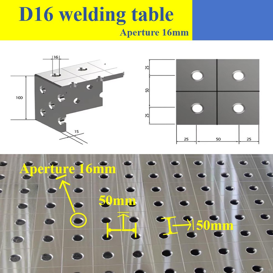 Adaptabilidad multifuncional: la mesa tiene orificios de posicionamiento preperforados y posiciones de montaje de accesorios para una fijación rápida de varios accesorios de herramientas, compatible con varios procesos como soldadura por arco manual, soldadura por arco de argón y soldadura con protección de gas.